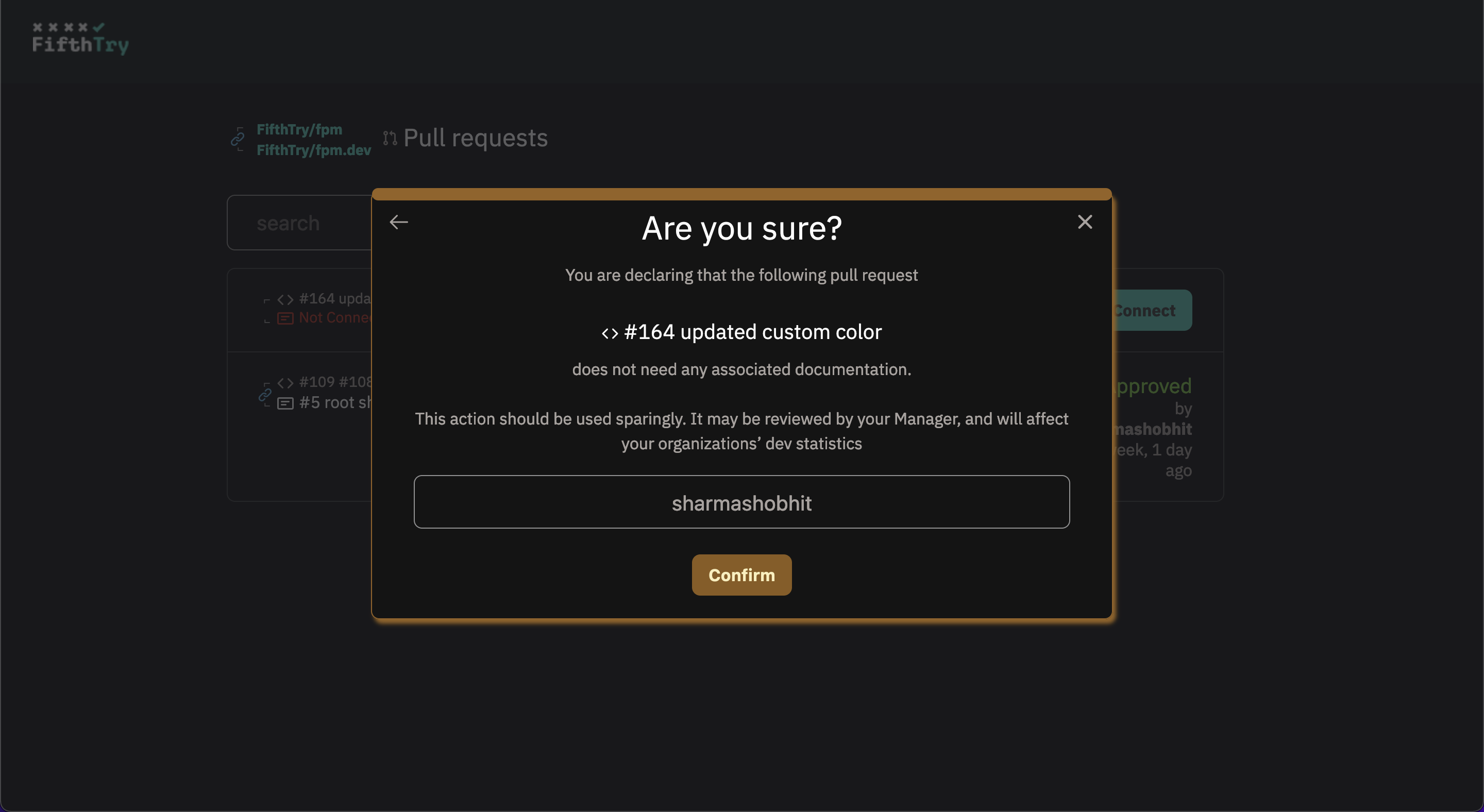 You can also approve the PR directly without associating a documentation PR. This action can be taken by clicking on the link below the available documentation PR list.