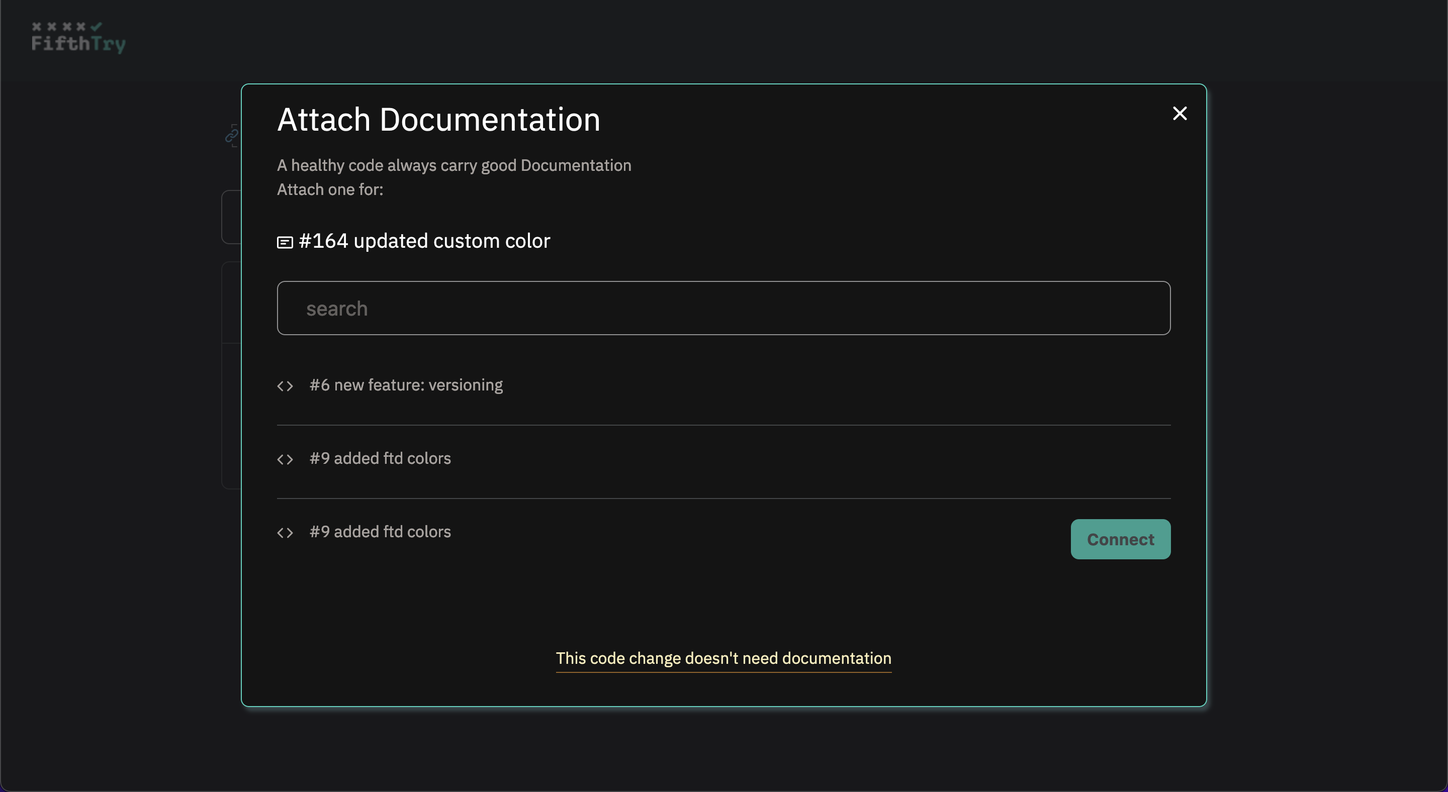 Every code PR should carry a documentation PR associated with it. For this actions the Pull Request Mapping Dialog is used.